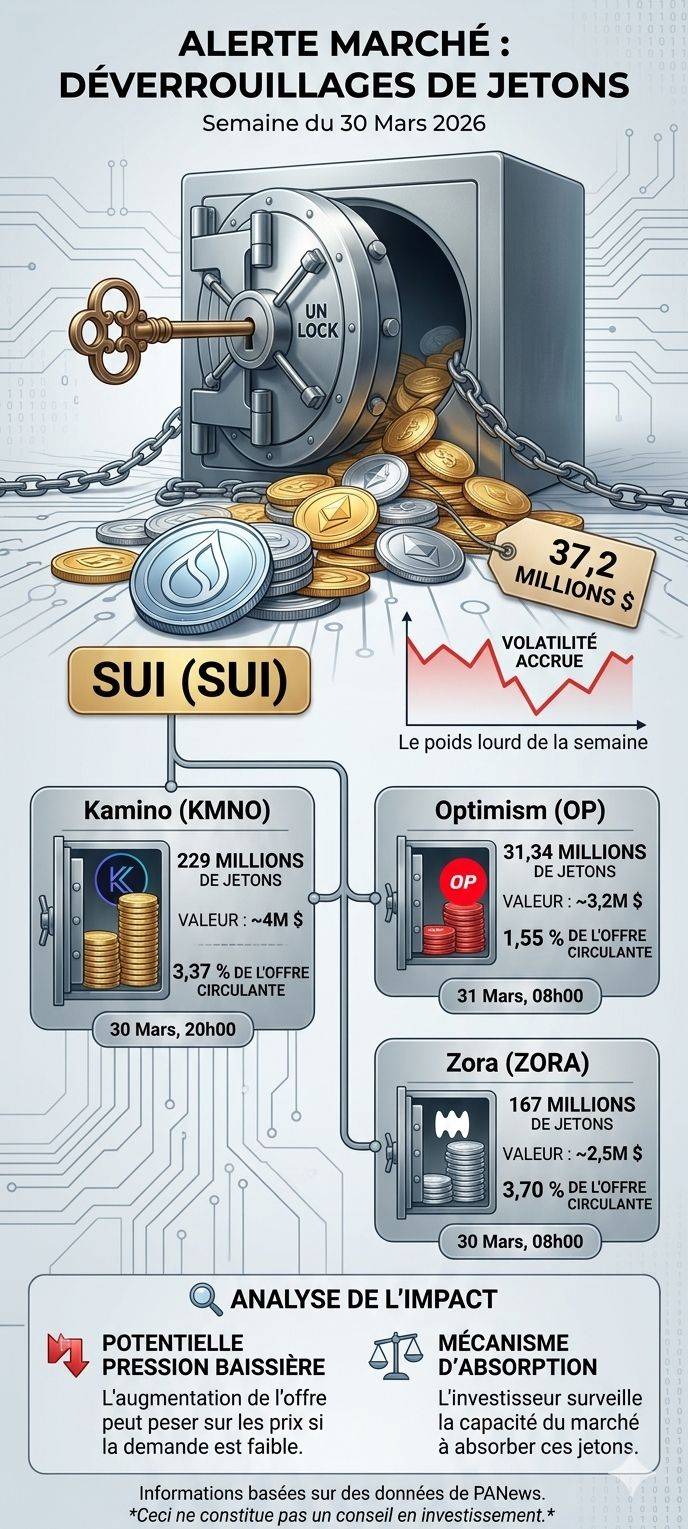In the crypto universe, "unlocks" are events closely monitored by investors, as the increase in circulating supply can exert downward pressure on prices if demand does not follow. Here is the schedule of major unlocks for the end of March 2026.