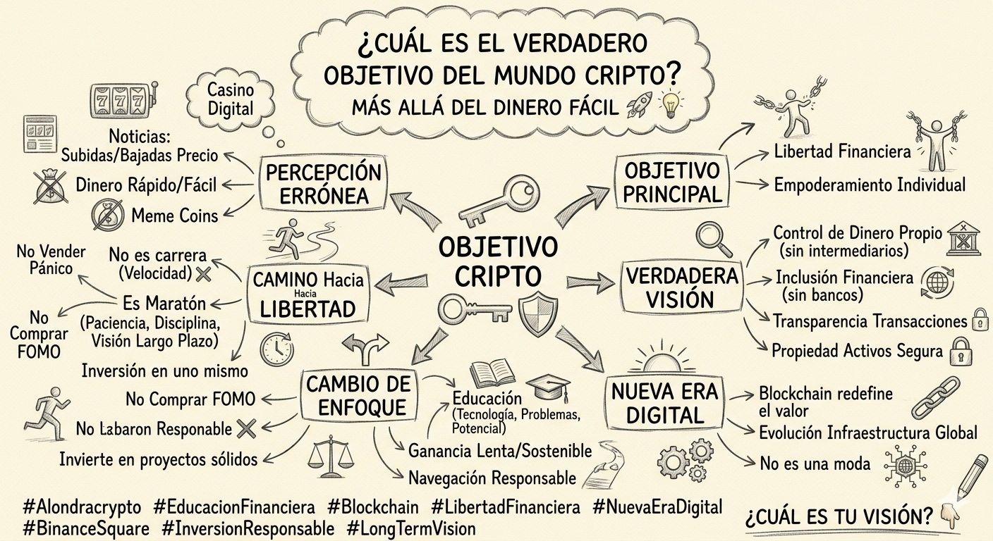 The true goal of blockchain technology and cryptocurrencies is not simply to get rich quickly. The main objective is Financial Freedom and individual empowerment. It is to give us total control over our own money, without relying on intermediaries or traditional institutions that often impose their own rules and limitations. Crypto is financial inclusion for those who do not have access to the banking system, it is transparency in transactions, and it is the possibility of owning our own assets securely.