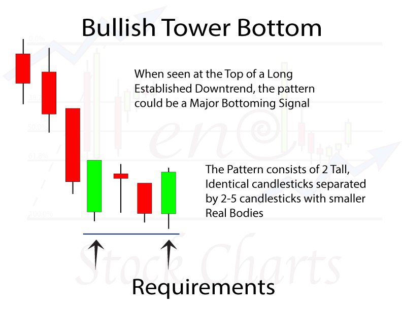 A Tower Bottom is not complete until the large bullish candle closes strongly. Additional confirmation improves reliability: