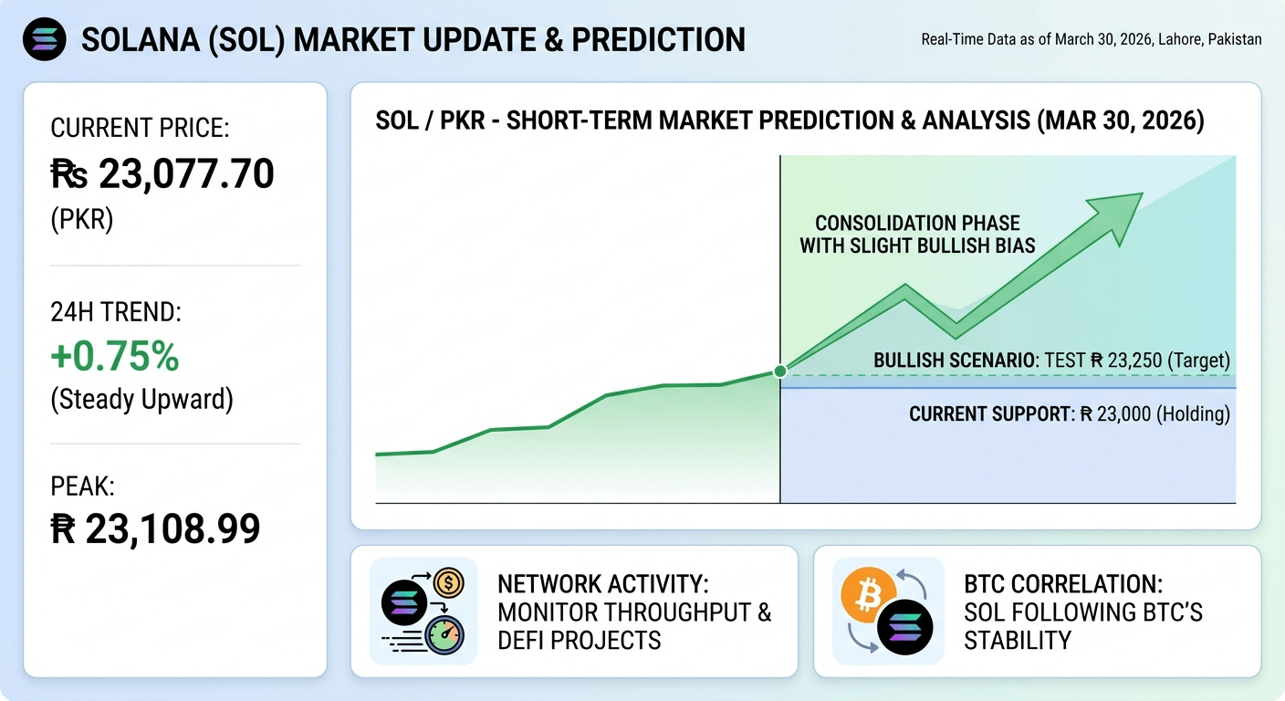 Bullish Scenario: If SOL maintains its support level above Rs. 23,000, it could test the next resistance near Rs. 23,250. High trading volume and the recent 0.88% peak earlier today suggest there is still buying interest.
