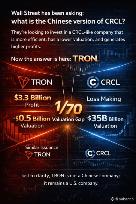 TRON operates at a stablecoin issuance scale comparable to CRCL, placing both within the same macro layer: