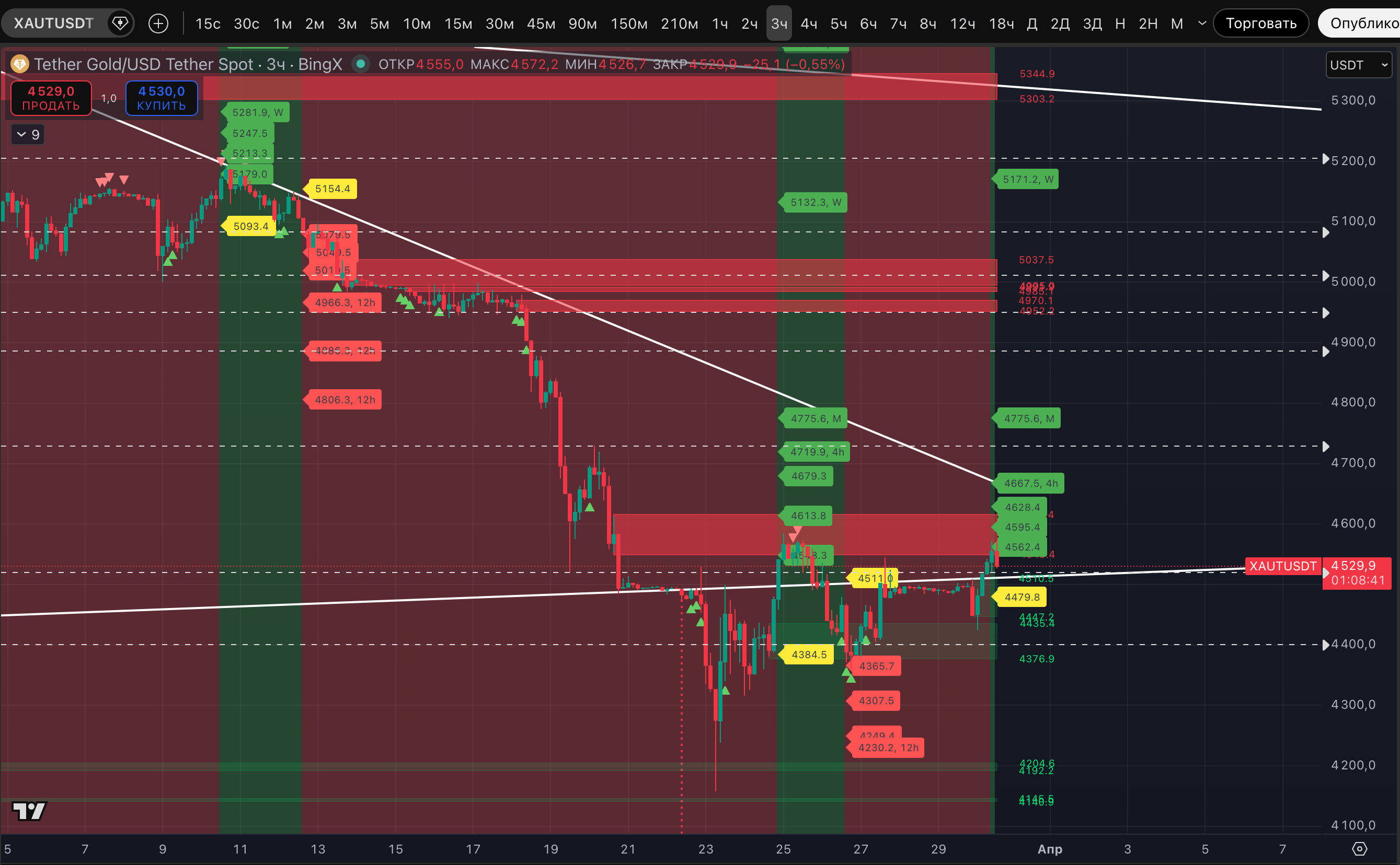 The key to the growth signals is that the price of #XAUT has returned to a stable uptrend on the 3-hour timeframe. So far, it has immediately hit the liquidity zone of $4,549-$4,615.