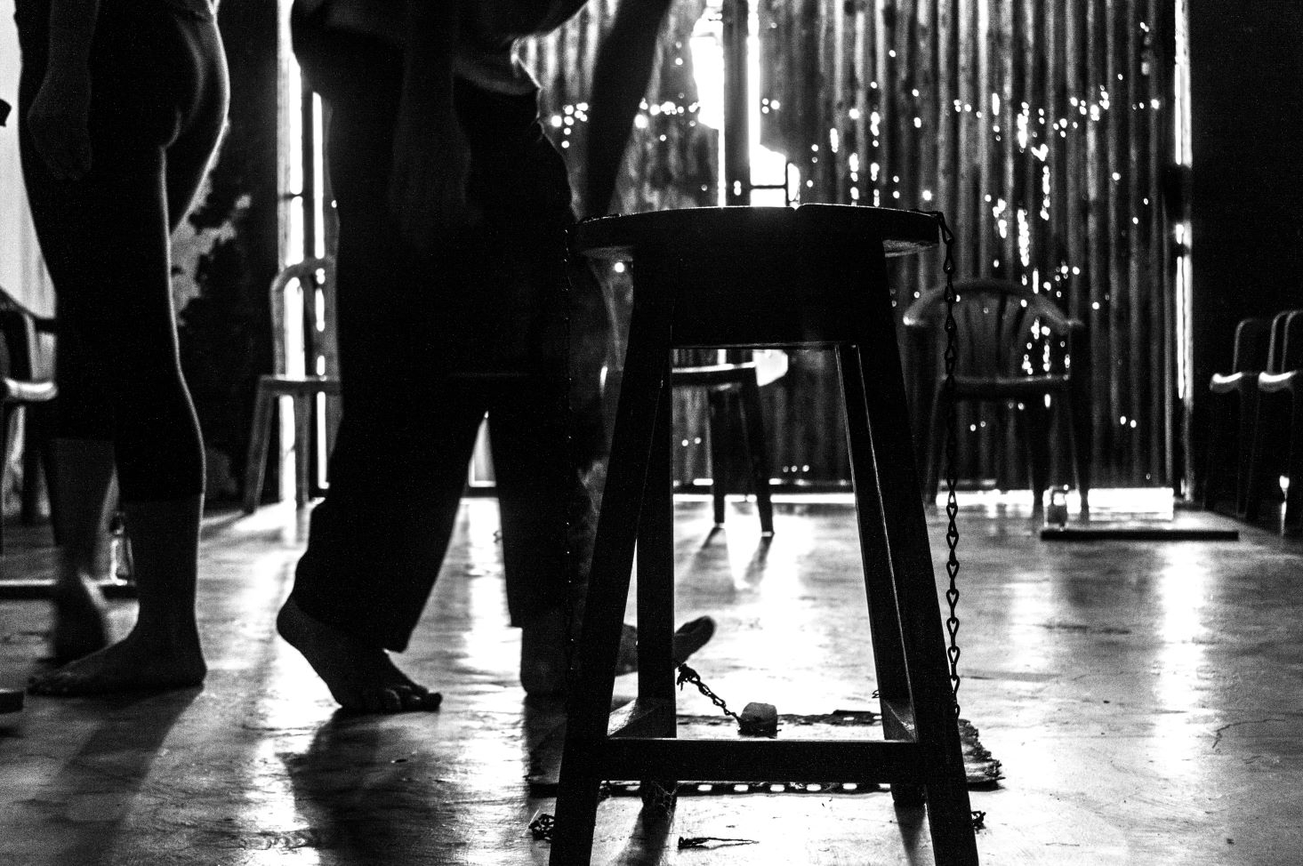 This photograph captures a sacred moment in the Garage Room of Acarigua, Portuguesa state, Venezuela. It is a rehearsal of the play "Elisa", based on the story "Who killed Saturnino" by Roberto Ryzcko, under the version, direction, and performance of Alexander D’León.