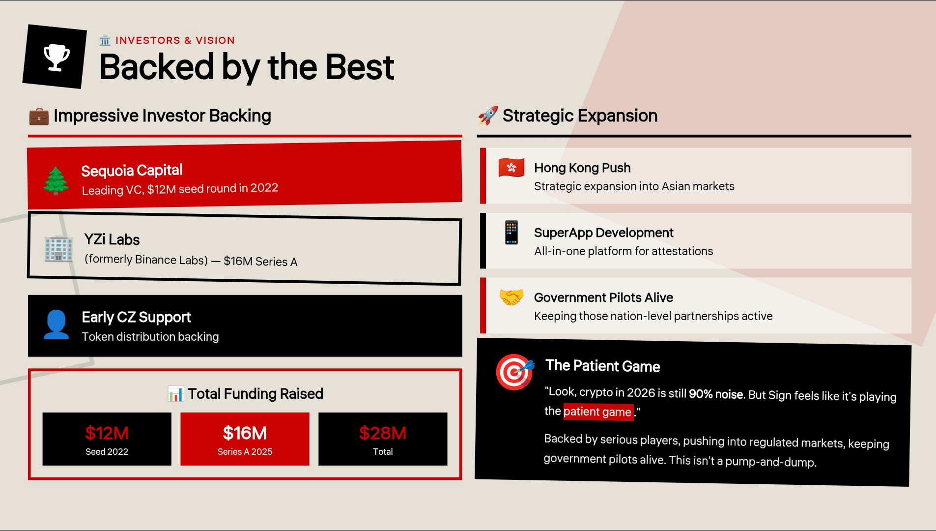 Look, crypto in 2026 is still 90% noise. But Sign feels like it’s playing the patient game. Backed by Sequoia, YZi Labs, even early CZ love on the token distribution side. They’re pushing into Hong Kong, talking SuperApp ideas, and keeping those government pilots alive.