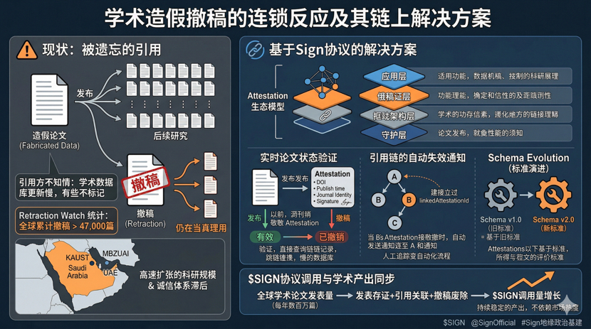 For the usage of $SIGN , this scenario has a very good characteristic: it does not rely on a specific industry hotspot; it is a consistently stable daily output. Millions of academic papers are published globally every year, and each publication attestation, every linkedAttestationId established by citations, and every revocation of retraction are protocol calls. The call volume follows the growth rate of global scientific research output and does not depend on market trends.