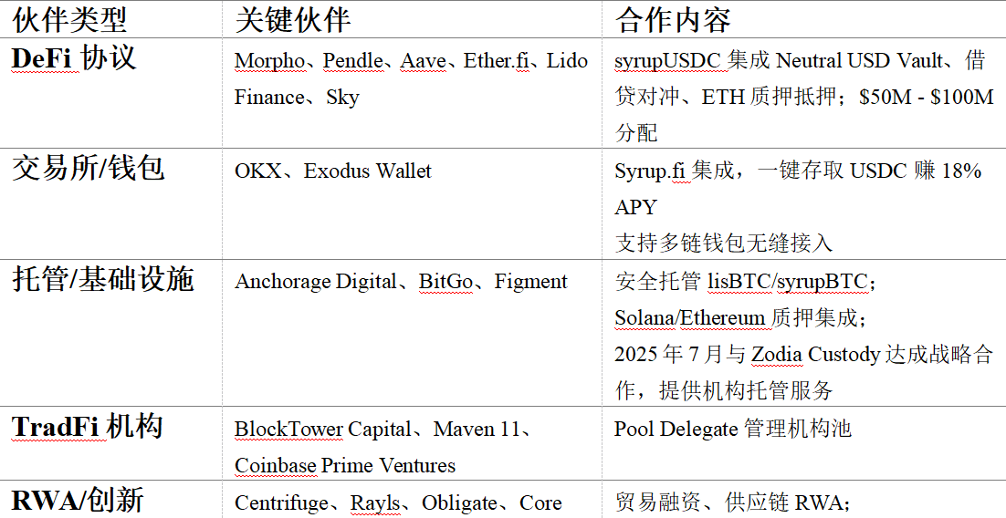 DeFi side attracts retail users via Syrup.fi, integrating wallets like OKX Wallet/Exodus, with user count exceeding 100,000. In 2025, the first $100M+ loan from TradFi partners is added, accelerating institutional inflows.