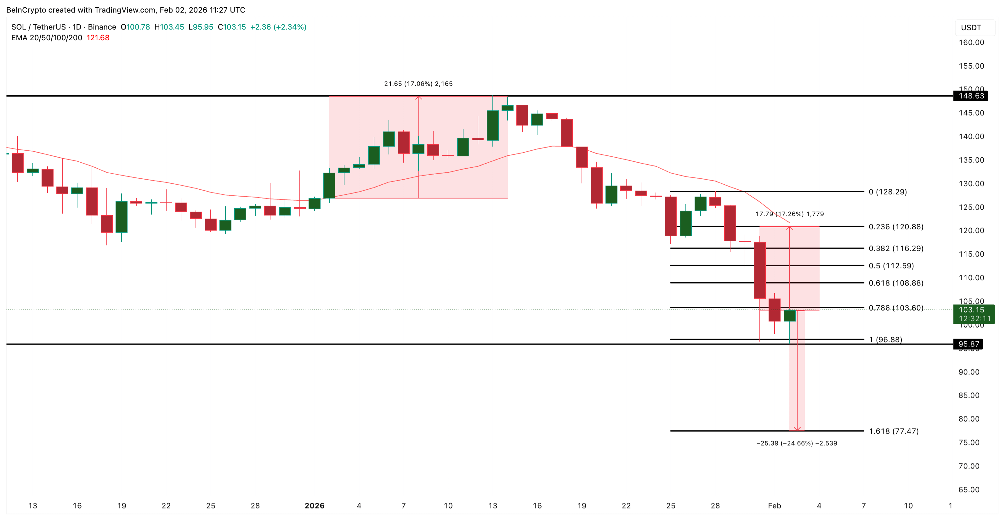 Solana (SOL) shows early signs of stabilization after a sharp market decline. Over the past seven days, the asset has lost about 15.5% of its value. The decline intensified amid overall market sell-offs between January 31 and February 1.