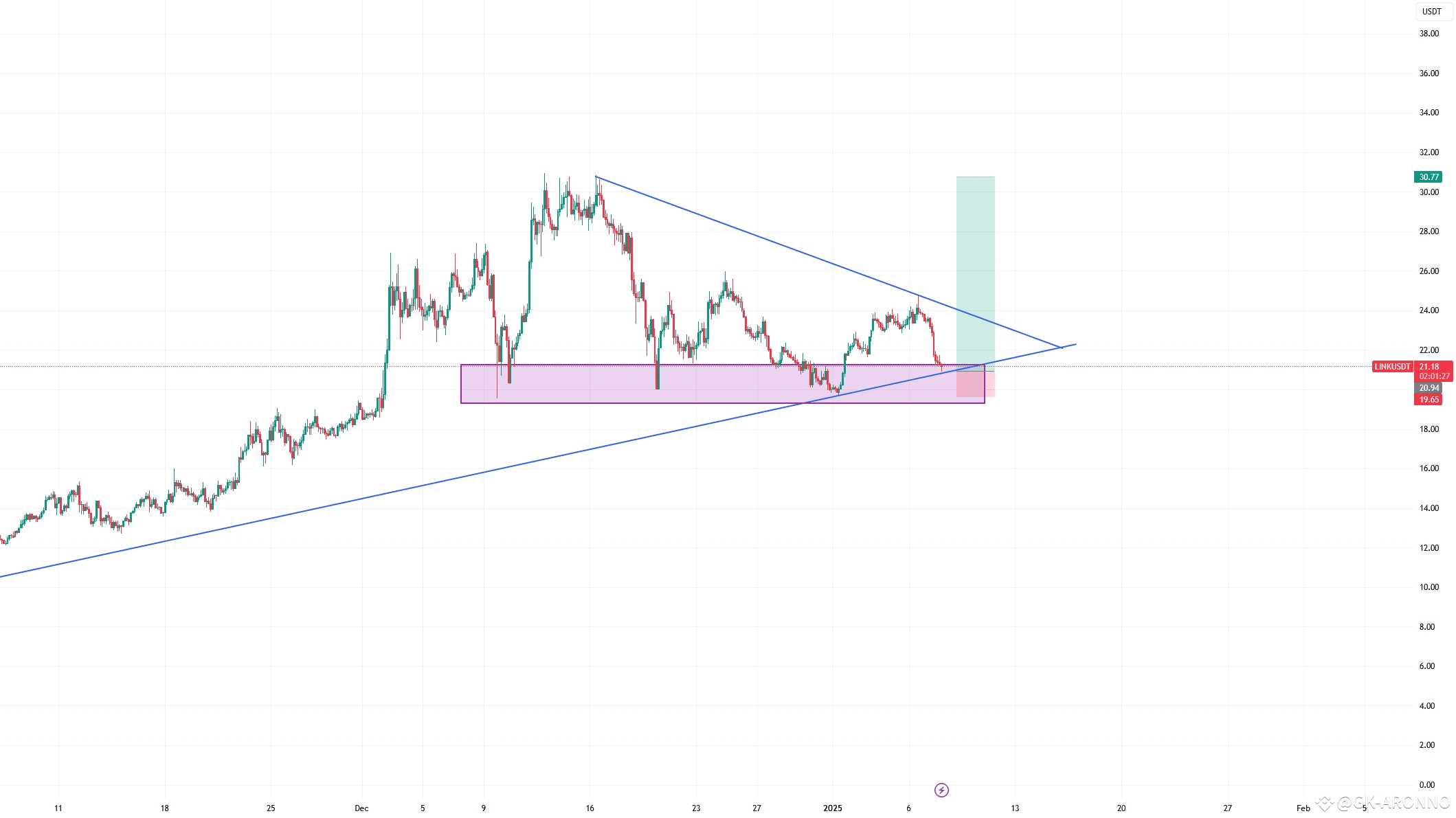 Las noticias recientes destacan que Ripple está ampliando la adopción de RLUSD al integrar los feeds de precios de Chainlink, mejorando aún más la utilidad de las stablecoins. Este desarrollo podría contribuir a un aumento del interés del mercado en Chainlink (LINK). En este momento, LINK ha alcanzado una zona crítica de soporte y alta demanda entre $20.50 y $21.50, donde los compradores han intervenido históricamente.