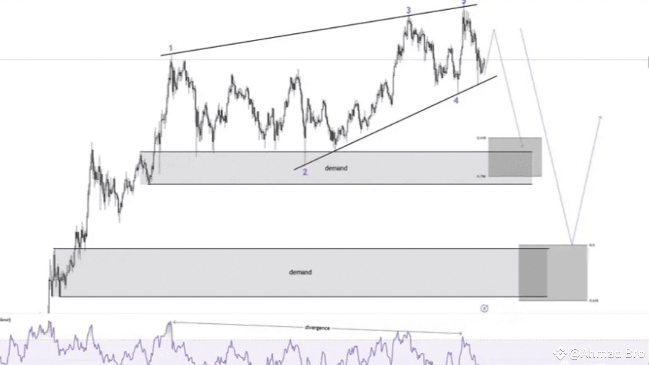 Solana ha estado mostrando algunas señales críticas de divergencia en el mercado, y esto podría indicar un posible cambio de dirección. Piensa en la divergencia como una señal de advertencia en los gráficos que sugiere que la tendencia actual podría estar perdiendo impulso. En este momento, estamos viendo una formación de cuña ascendente combinada con un patrón de 5 ondas completado basado en la teoría de Ondas de Elliott. Aunque estos términos pueden sonar complejos, apuntan a una cosa: una posible corrección en el precio está en el horizonte.
