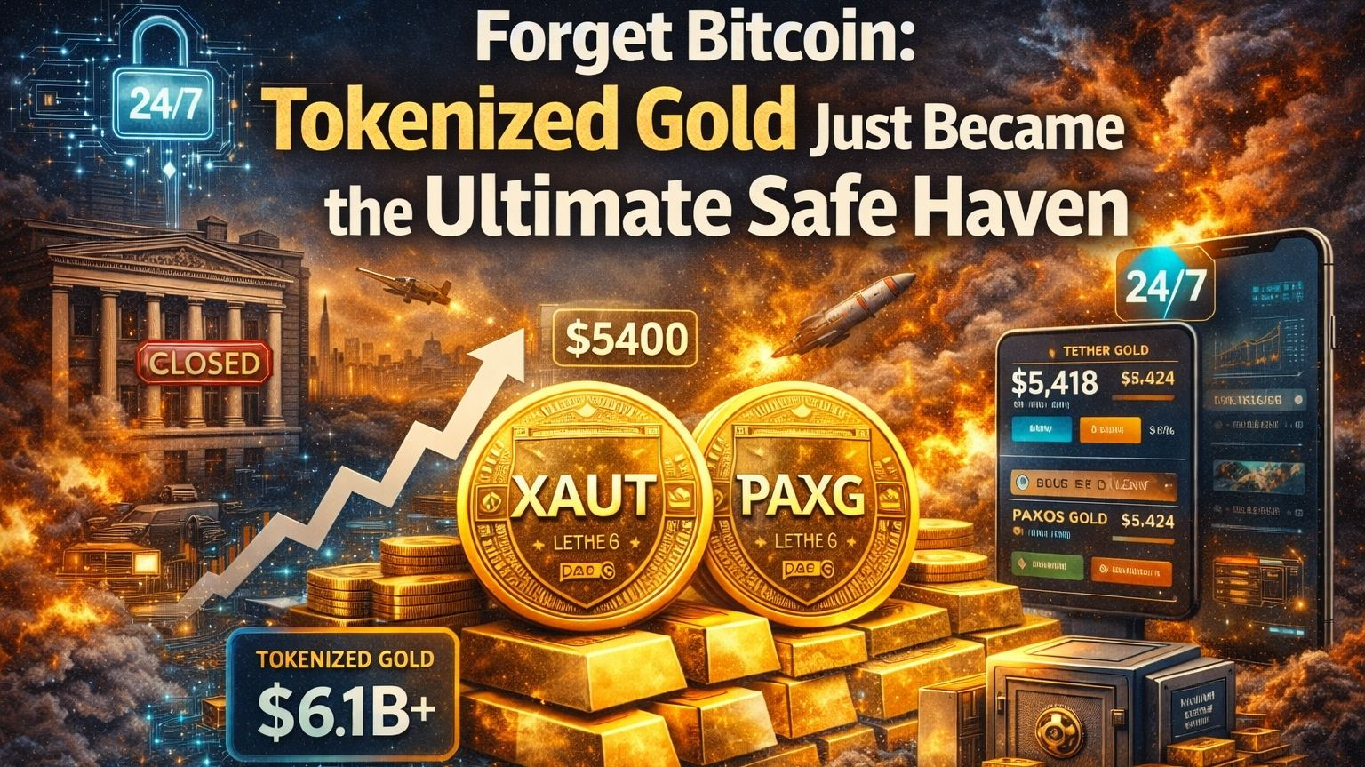 El oro tokenizado como XAUT y PAXG está en auge como el nuevo refugio seguro porque rastrea el valor del oro físico mientras comercia 24/7 en blockchains, incluso cuando los mercados tradicionales cierran durante las crisis.