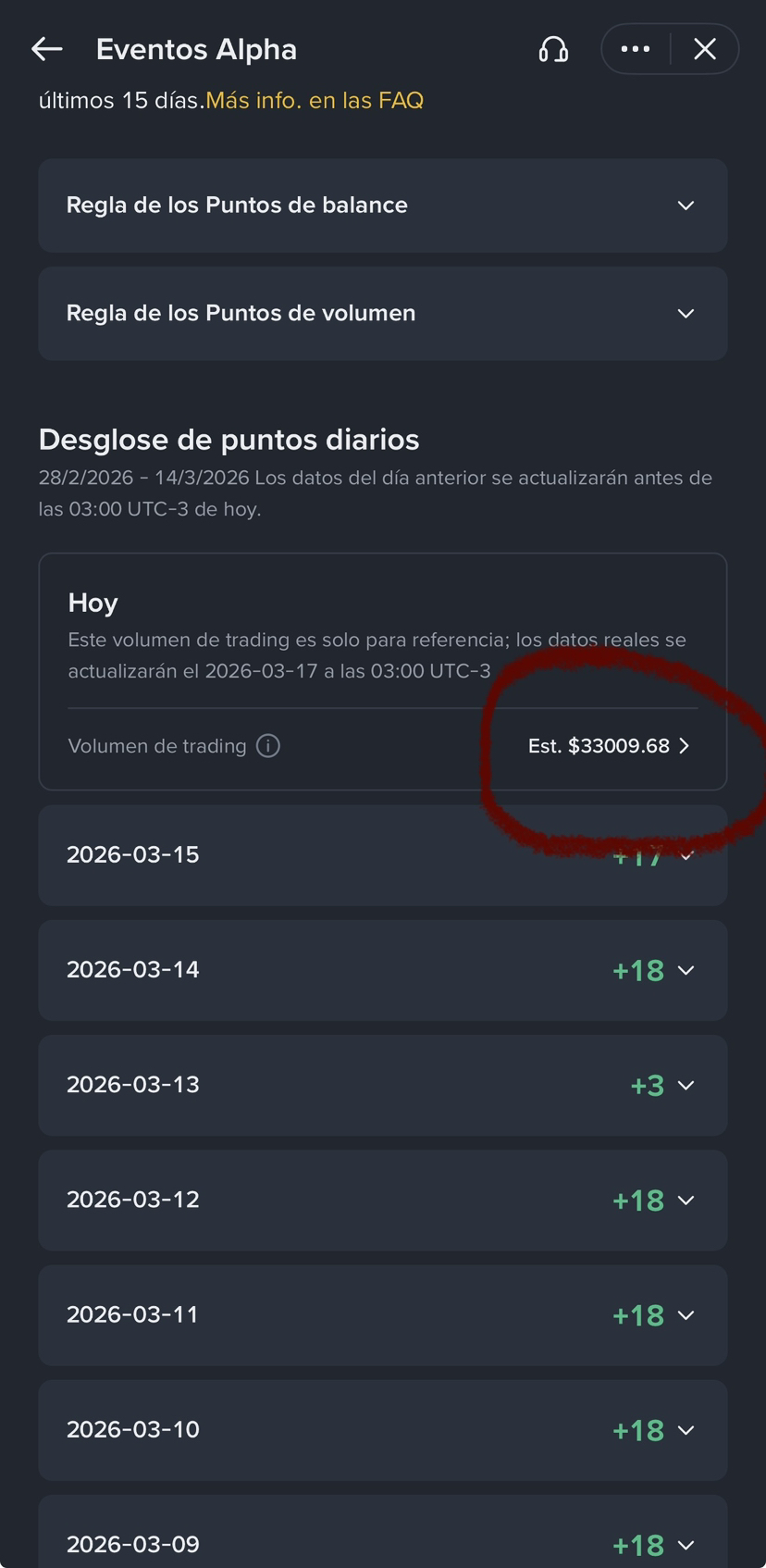 Cuanto más volumen generes, más Alpha Points podés acumular.