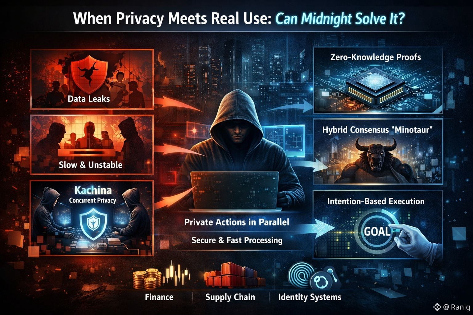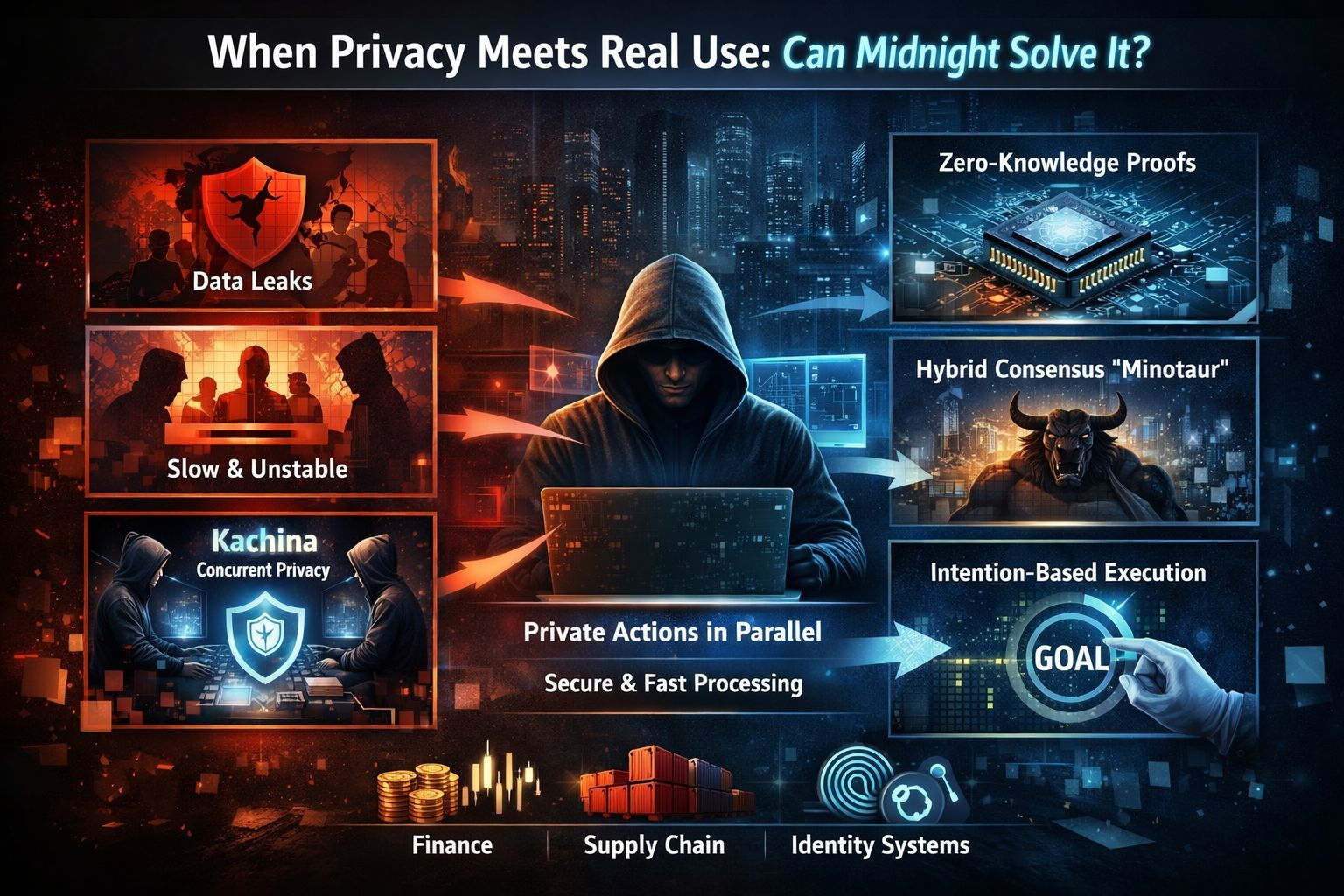 Midnight is trying to solve this gap. Its system, called Kachina, allows multiple private actions to happen at the same time without exposing data. This is important because real-world apps are not simple or sequential. Many users act at once, like in finance or supply chains.
