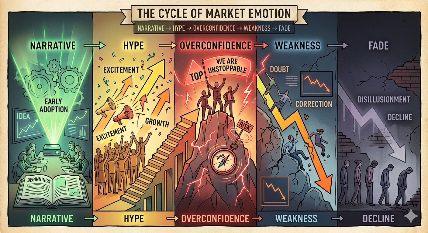 Se vuelven más ruidosos a medida que se debilitan. Más visibles, más ciertos, más pulidos justo antes de que la estructura subyacente comience a adelgazar. Sucede tan a menudo que dejas de reaccionar a ello.