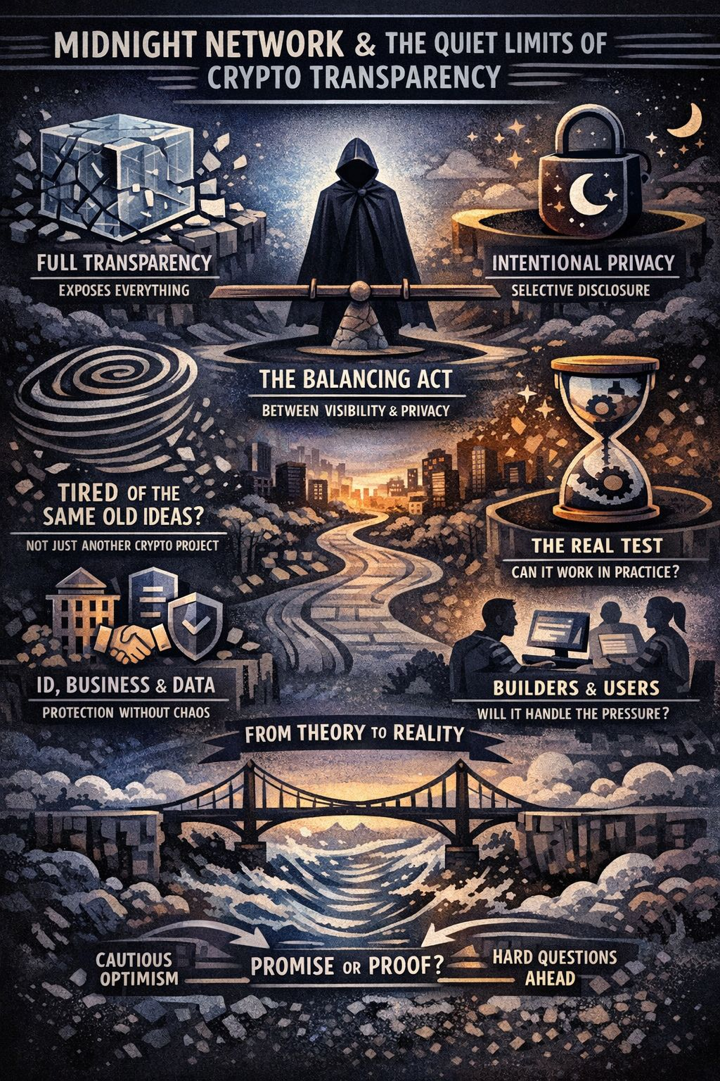 Porque si Midnight importa más tarde, no será porque sonó más inteligente que el resto del campo. No será porque el lenguaje era más limpio, o porque la gente estaba lista para creer en otra historia de infraestructura. Será porque resolvió algo que ha estado obstaculizando silenciosamente durante años: este constante desajuste entre lo que las blockchains pueden verificar y lo que los participantes reales están realmente cómodos exponiendo.