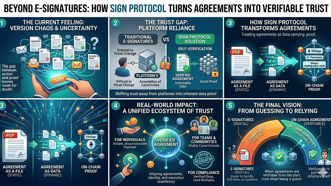 Al principio, lo pensé como solo otro paso adelante para las firmas digitales. Algo que hace que firmar sea más fácil o más eficiente. Pero cuanto más lo entendía, más sentía que era un cambio en dónde se encuentra realmente la confianza.
