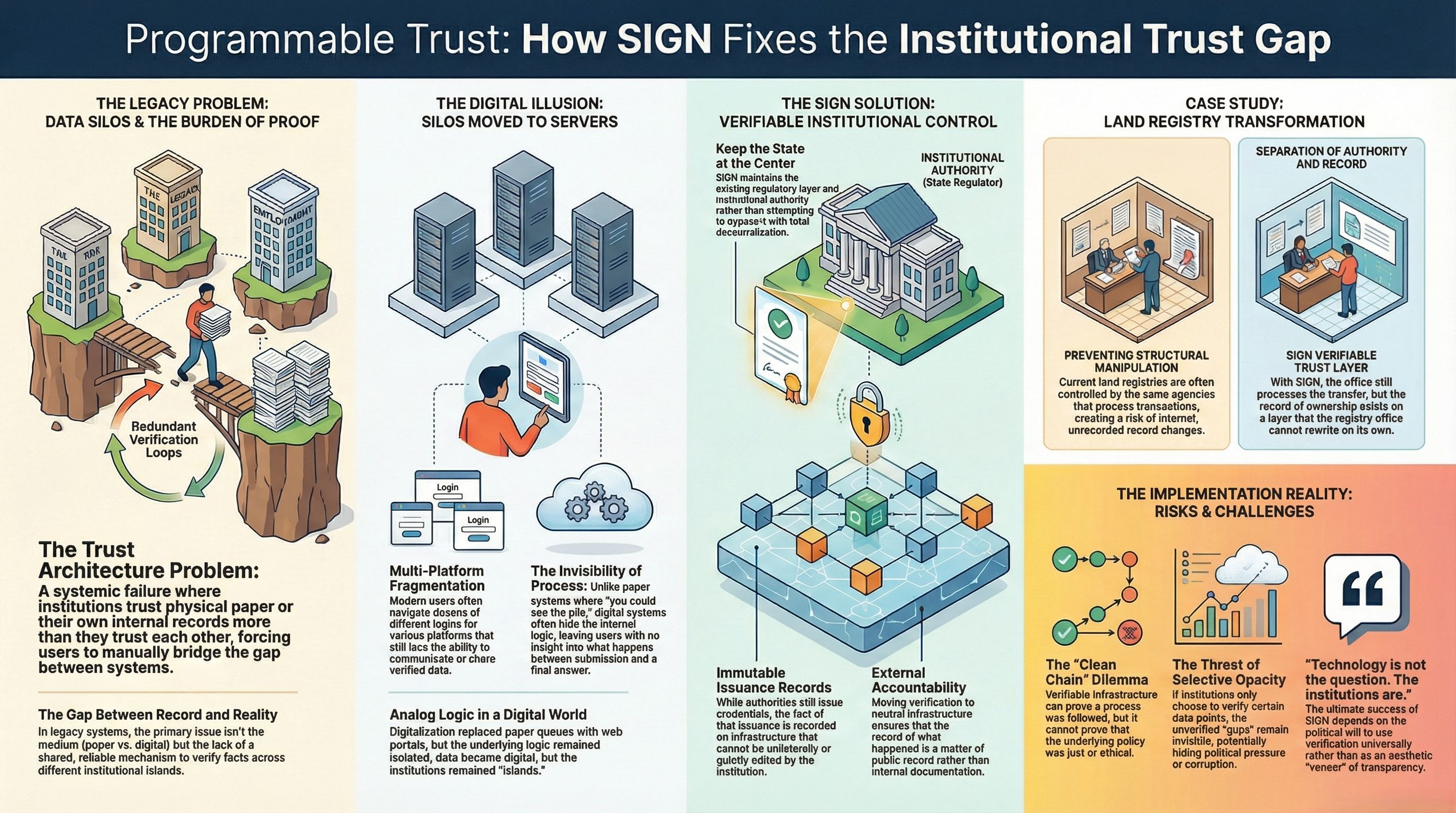 Take land registry as an example. Right now in many countries the record of who owns what exists inside systems controlled by the same agencies that process the transactions. The potential for quiet manipulation is structural, not just incidental. With SIGN-style infrastructure the record of ownership and the record of transfer would exist on a layer that the registry office cannot unilaterally rewrite.