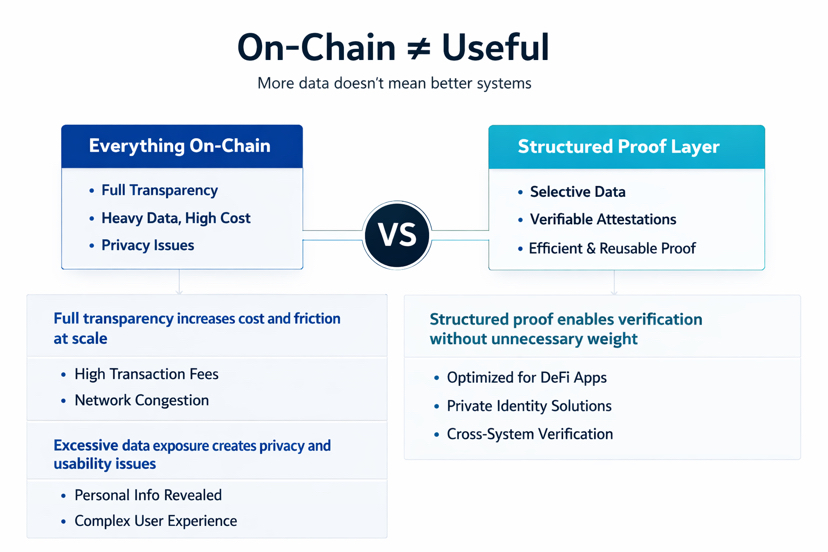 Because a lot of this space still acts like putting something on-chain automatically makes it useful. That idea doesn’t really hold up anymore. Public by default sounds great until cost becomes an issue, or privacy becomes an issue, or scale becomes an issue. Then everything just turns into friction.