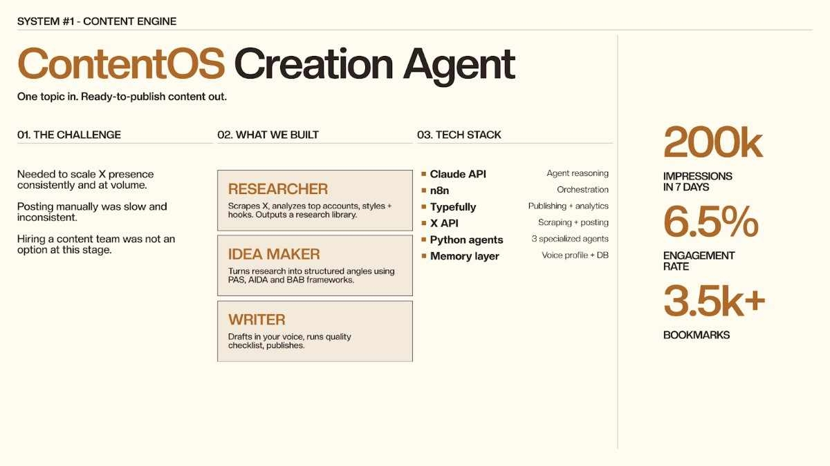 El agente también retroalimenta los datos de rendimiento en el siguiente ciclo de contenido, mejorando la producción en función de lo que realmente está funcionando con la audiencia objetivo.