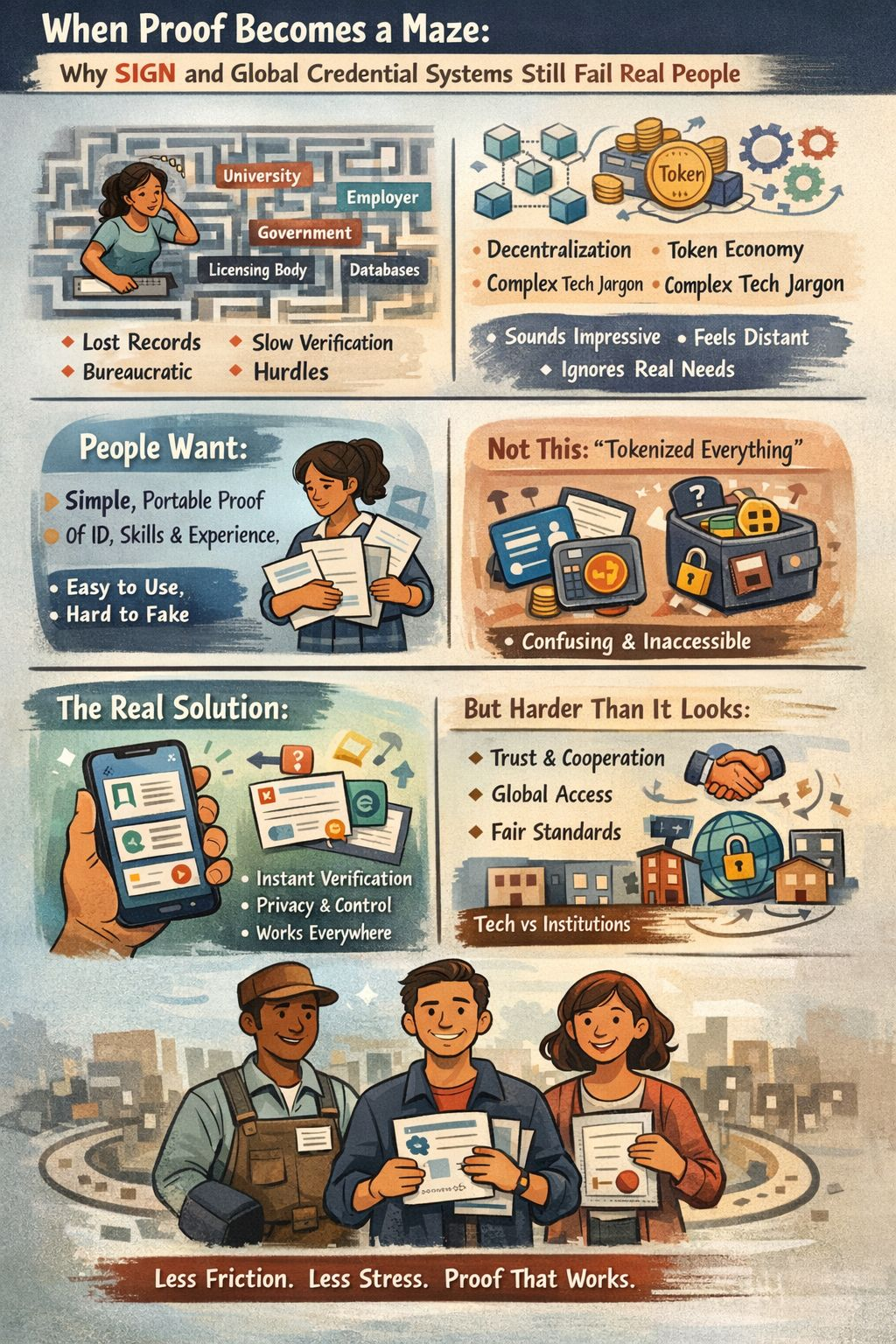 Y tal vez esa sea la parte que la gente olvida cuando se adentra demasiado en el lenguaje de los sistemas. A la mayoría de las personas no les importa la ideología detrás de la infraestructura de credenciales. No les importa si es lo suficientemente descentralizada para un libro blanco, lo suficientemente elegante para una demostración en conferencia, o lo suficientemente optimizada financieramente para un modelo de token.