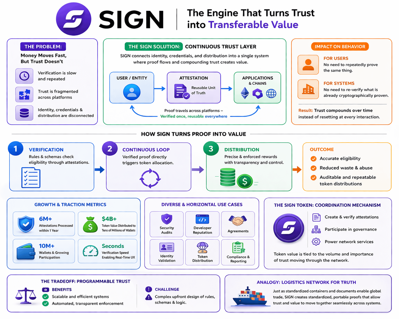 A useful way to understand SIGN is not as just another protocol or token platform, but as a logistics network for truth. Just as global trade depends on standardized containers and verifiable documentation, digital systems increasingly need standardized proofs that can move without losing meaning. SIGN is building those containers for trust, allowing verification and value to move together.