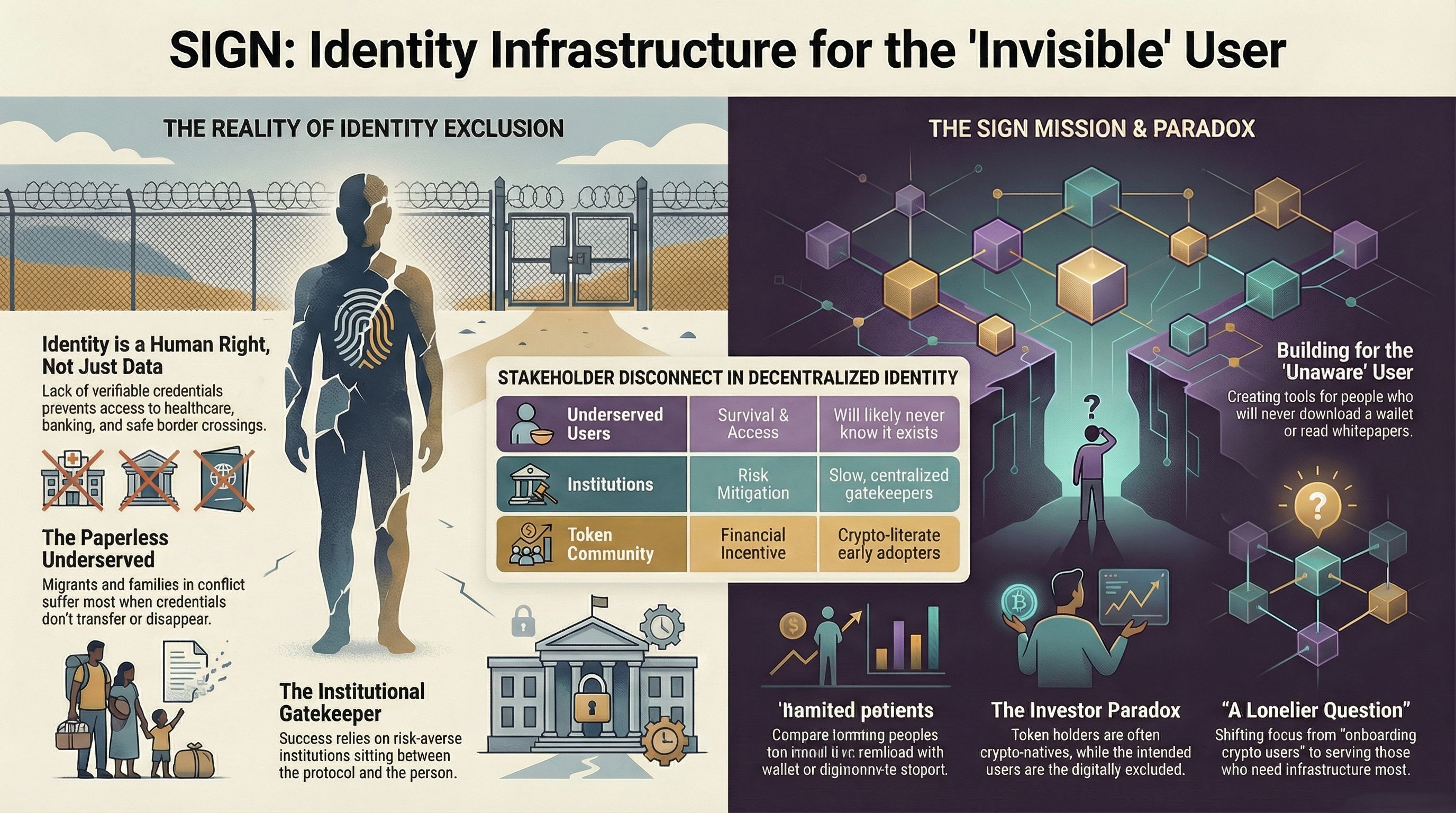 because the problem they're describing is real. genuinely real. identity infrastructure is broken in ways that hurt actual people in actual places every single day. the gap between having verifiable credentials and not having them isn't abstract. it determines whether you can open an account, sign a contract, cross a border, access healthcare, prove you exist to a system that keeps asking.