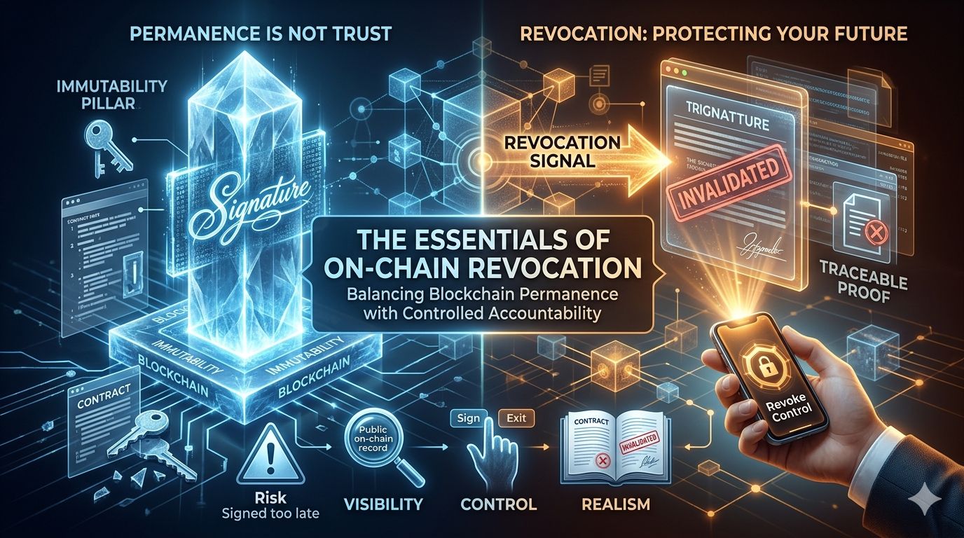 At its simplest, revocation is the ability to say: this signature should no longer be considered valid. Not erased, not hidden, but clearly marked as no longer trustworthy. That distinction matters more than most people think. Blockchain doesn’t forget, and it shouldn’t. But it needs a way to reflect that truth can evolve over time.