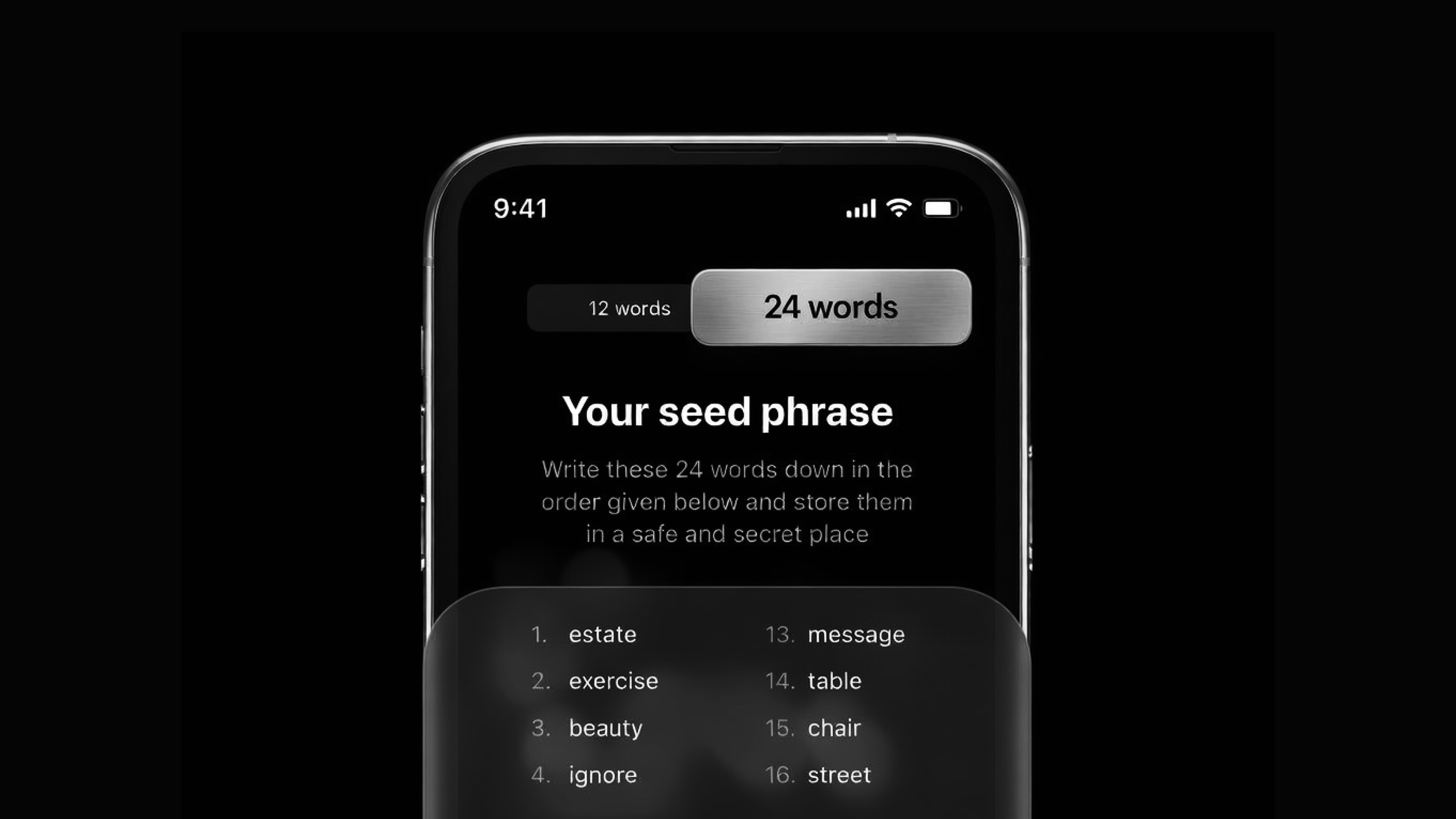 Una frase semilla (también llamada frase de recuperación) es un conjunto de 12, 18 o 24 palabras generadas aleatoriamente. Estas palabras actúan como una copia de seguridad legible por humanos de las claves privadas de tu billetera.
