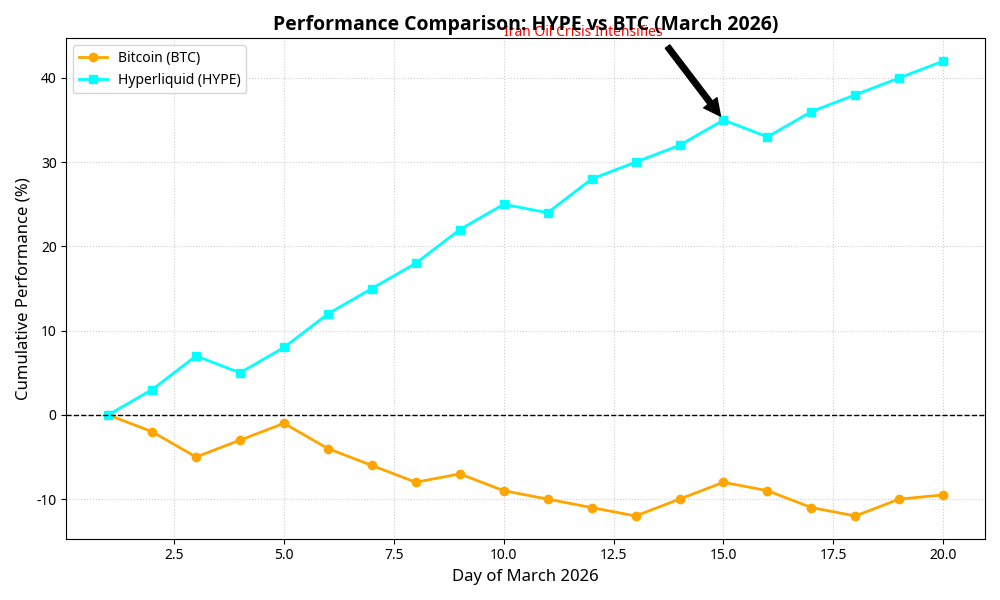 El ascenso de HYPE no fue una coincidencia, sino el resultado de su interacción con los eventos globales. Con la crisis del petróleo en aumento en el Medio Oriente, la plataforma **Hyperliquid** ha surgido como un refugio seguro para los traders para cubrirse y negociar contratos de energía alejados de las restricciones de los mercados tradicionales.