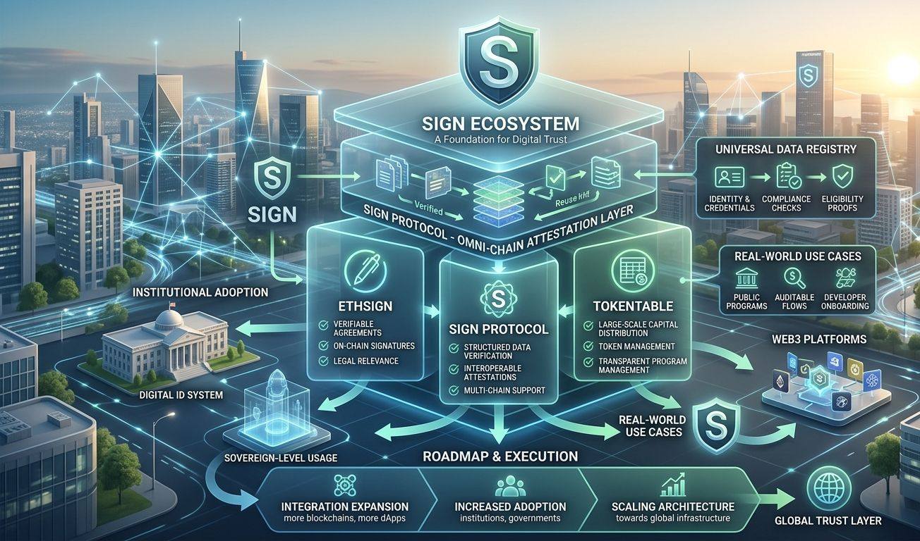 The development of the ecosystem already reflects this direction through a growing product stack. Sign Protocol serves as the verification and attestation layer. TokenTable focuses on large-scale token and capital distribution, helping teams and organizations manage complex distribution programs transparently. EthSign enables verifiable agreements and digital signatures, bringing legally relevant documentation into the on-chain world. Together, these products form a toolkit designed to solve real problems around trust, verification, and coordination.