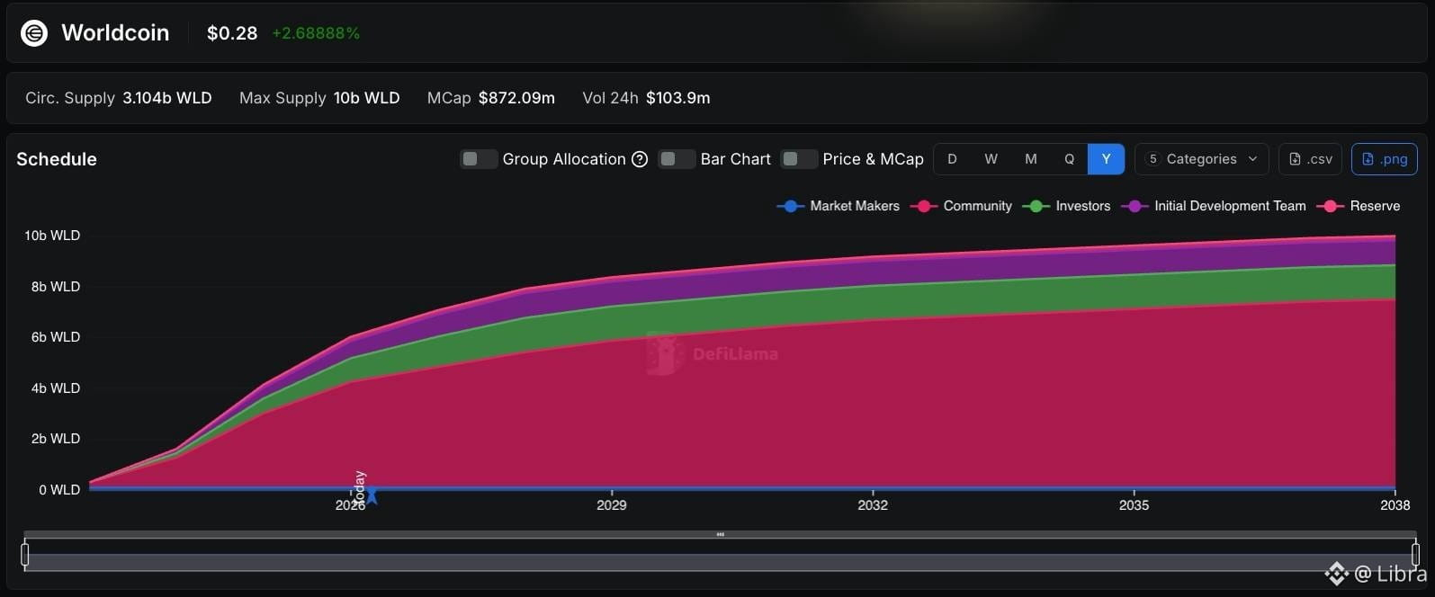 Với tốc độ vesting khoảng 4,79 triệu WLD mỗi ngày, thị trường có thể phải hấp thụ một lượng cung đáng kể trong nhiều tháng sau đó, yếu tố thường tạo áp lực giảm giá đối với các token có cấu trúc phân bổ tập trung.