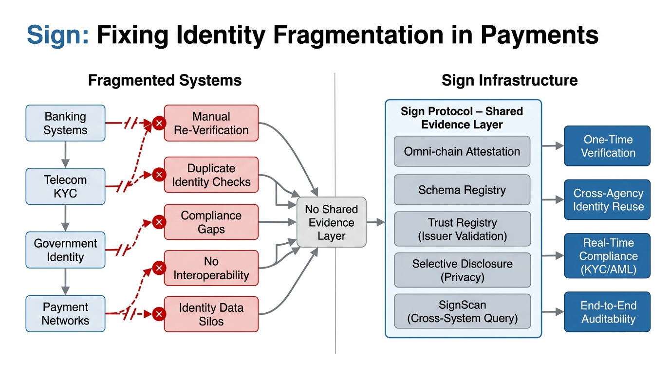 every transaction flowing across the Gulf's digital payment ecosystem — cross-border remittances, government disbursements, B2B settlements, real-time retail payments — needs verified identity information to travel with it. not just at onboarding. at every hop. across every agency. across every regulated operator. across every border. and right now, that identity verification is being rebuilt from scratch every time a payment crosses from one system into another. banks re-verify what telecom operators already verified. government agencies re-check what banks already confirmed. the same citizen credential gets duplicated, re-submitted, and re-checked across systems that have no shared layer connecting them.