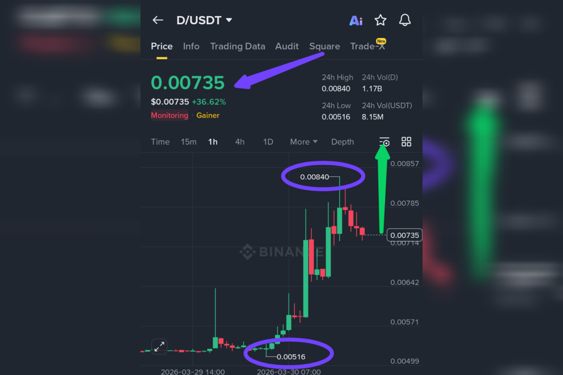 $D just ripped from $0.00516 to $0.00840, now trading at $0.00735 with a massive +36.62% gain. Volume exploded to 1.17B tokens with $8.15M USDT changing hands. The catalyst? Despite Binance's Monitoring Tag and potential delisting risks, the token is seeing aggressive accumulation from traders betting on a technical reversal after weeks of heavy selling. Smart money is front-running the bounce. The crowd is chasing the move. 📈