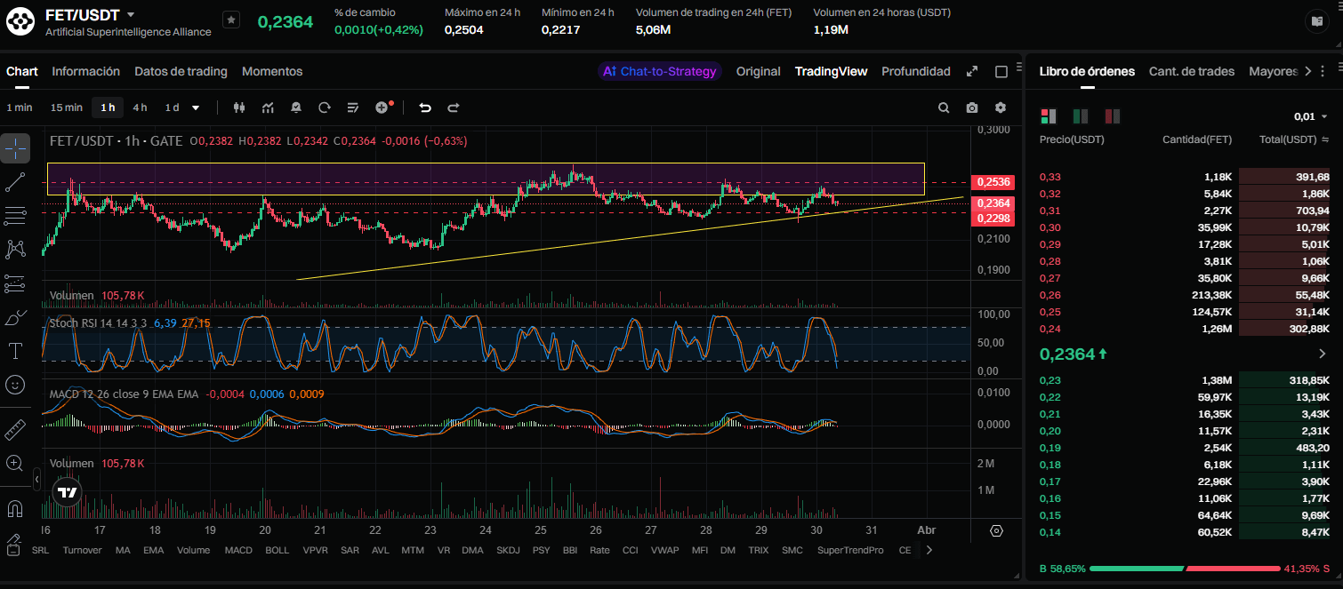 📌 Hace 15 días entré en $FET a 0.2298 con 1,804 tokens (≈411 USD). Hoy estoy en positivo ≈13 USD.