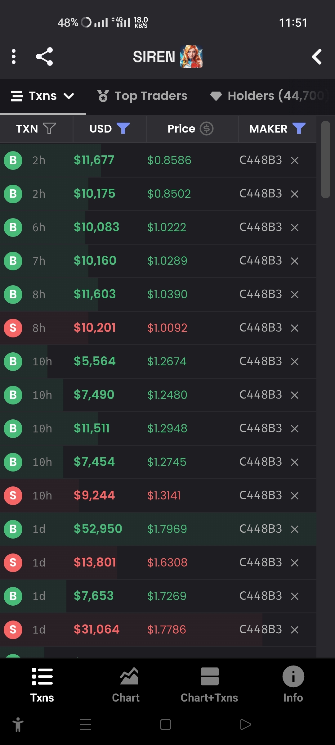Observamos en las imágenes una actividad intensa de una cartera que termina en (C448B3) este "Maker" realizó compras repetidas por montos que oscilan entre 10 mil y 50 mil dólares en diferentes niveles de precios (de 1.79$ hasta 0.85$) esto significa que hay una insistencia por parte de algunos grandes traders en enfriar o fortalecer las posiciones a pesar de la caída, lo que podría indicar una expectativa de rebote técnico y esto, en mi opinión, es una ilusión. ¿Sabes por qué lo considero una ilusión? Mira por qué 👇🏼👇🏼
