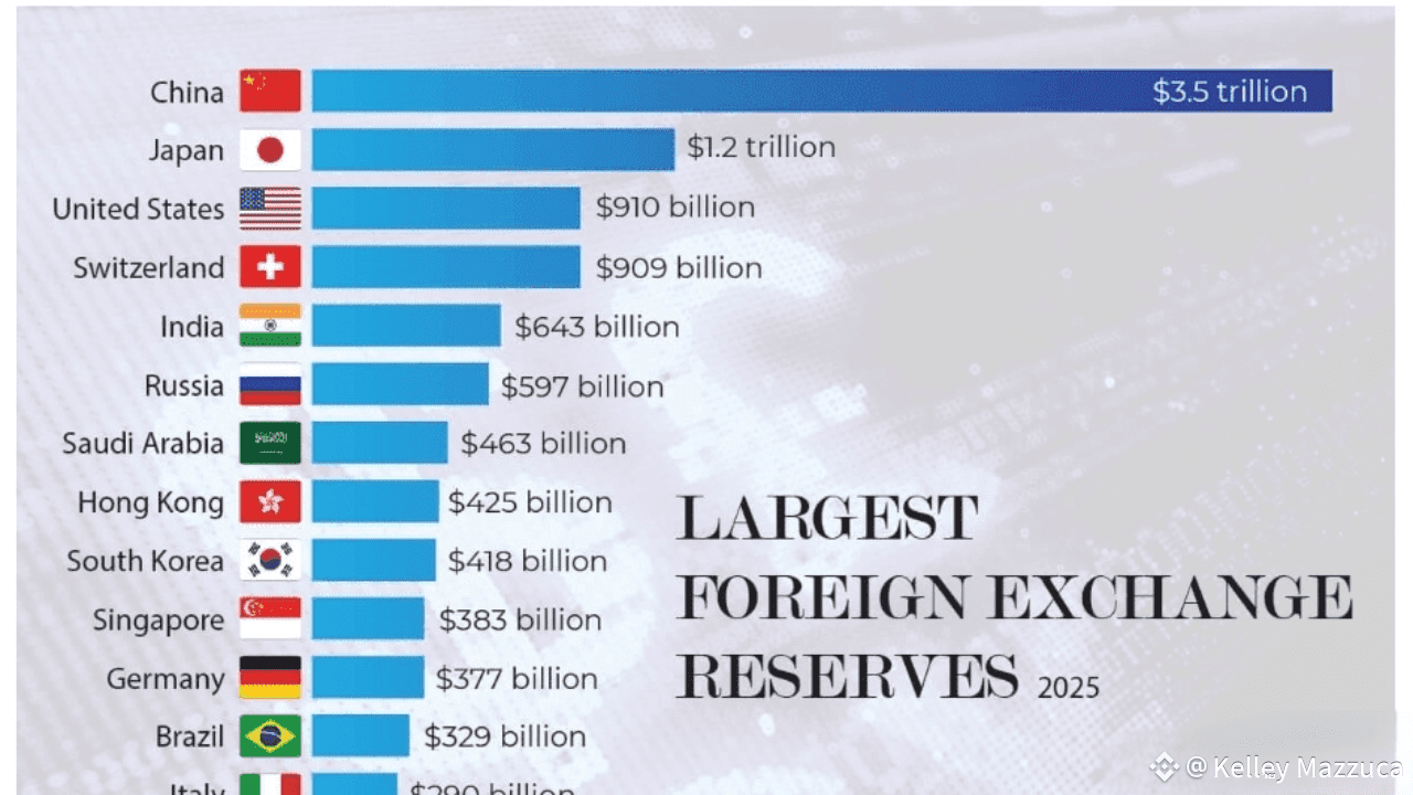 Reservas más bajas que otros porque el mundo ya tiene USD y Tesorerías — EE. UU. emite el activo que todos los demás deben comprar.