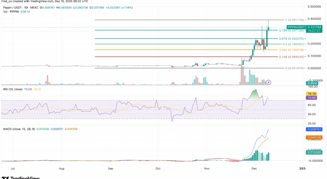 PIPPIN ha visto fuertes ganancias, con movimientos recientes mostrando aumentos de más del 60–80% en ventanas cortas.