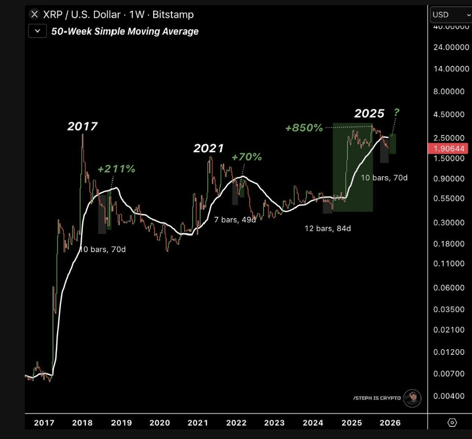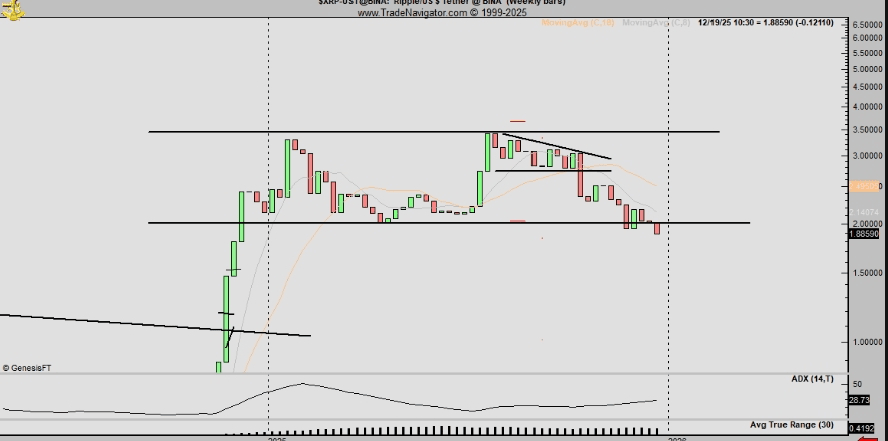 El precio de XRP se está debilitando junto con el criptomercado más amplio, comerciando aproximadamente alrededor del nivel de $1.90–$2.00 en medio de un sentimiento de aversión al riesgo y una corrección más amplia del criptomercado.