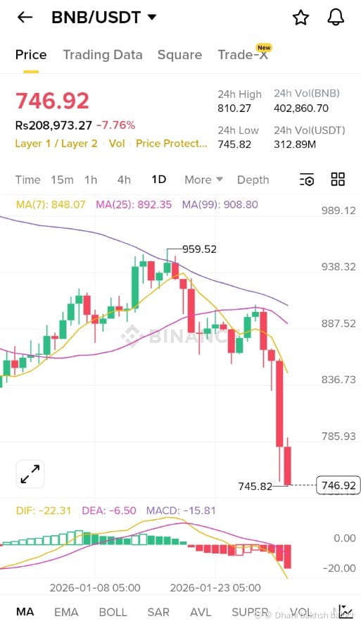 $BNB BNB (Binance Coin) is going down due to a combination of technical weakness, market sentiment, and broader crypto pressure. This decline is not random; it follows clear signals that traders and large investors watch closely.