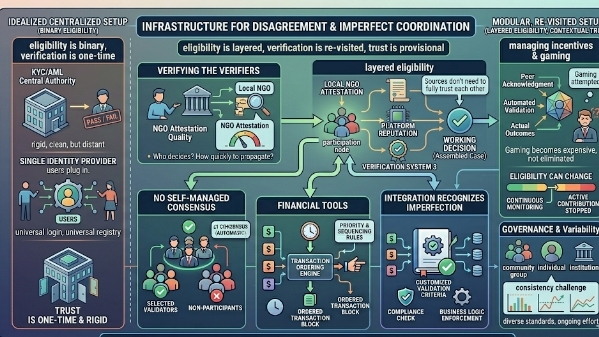 Si je prends du recul, ce que je vois est une infrastructure qui accepte la fragmentation comme point de départ. La confiance n'est pas unifiée—elle est négociée. L'éligibilité n'est pas fixe, elle est contextuelle. La vérification n'est pas permanente, elle est revisitée.