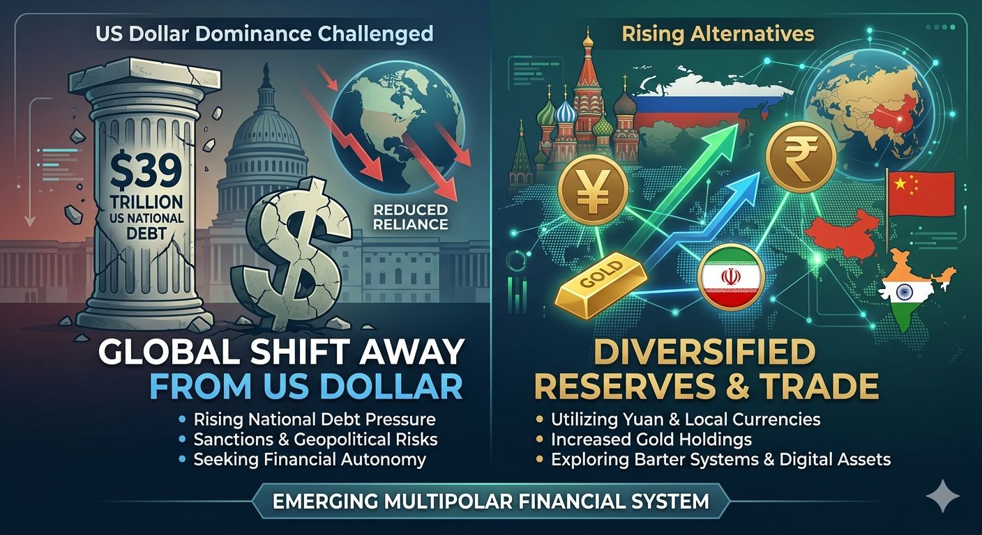 As U.S. national debt surpasses $39 trillion, we are witnessing a significant transformation in global trade dynamics. Major economies—including Russia, China, Iran, and India—are actively reducing their reliance on the U.S. dollar.