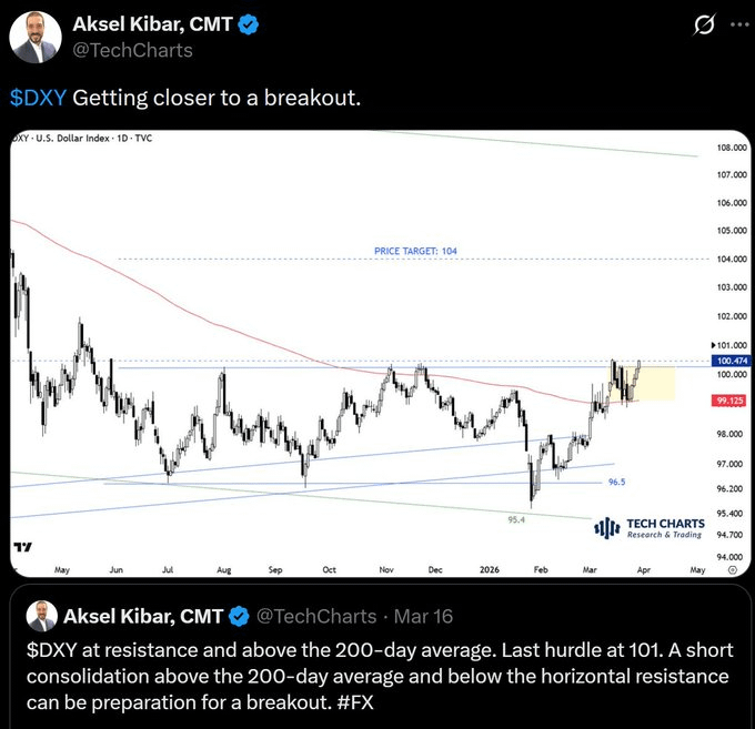 $DXY (force relative du dollar américain) se prépare à une rupture. Cela peut sembler bon, mais c'est un autre clou dans le cercueil des actifs à risque, qui sont inversement corrélés.