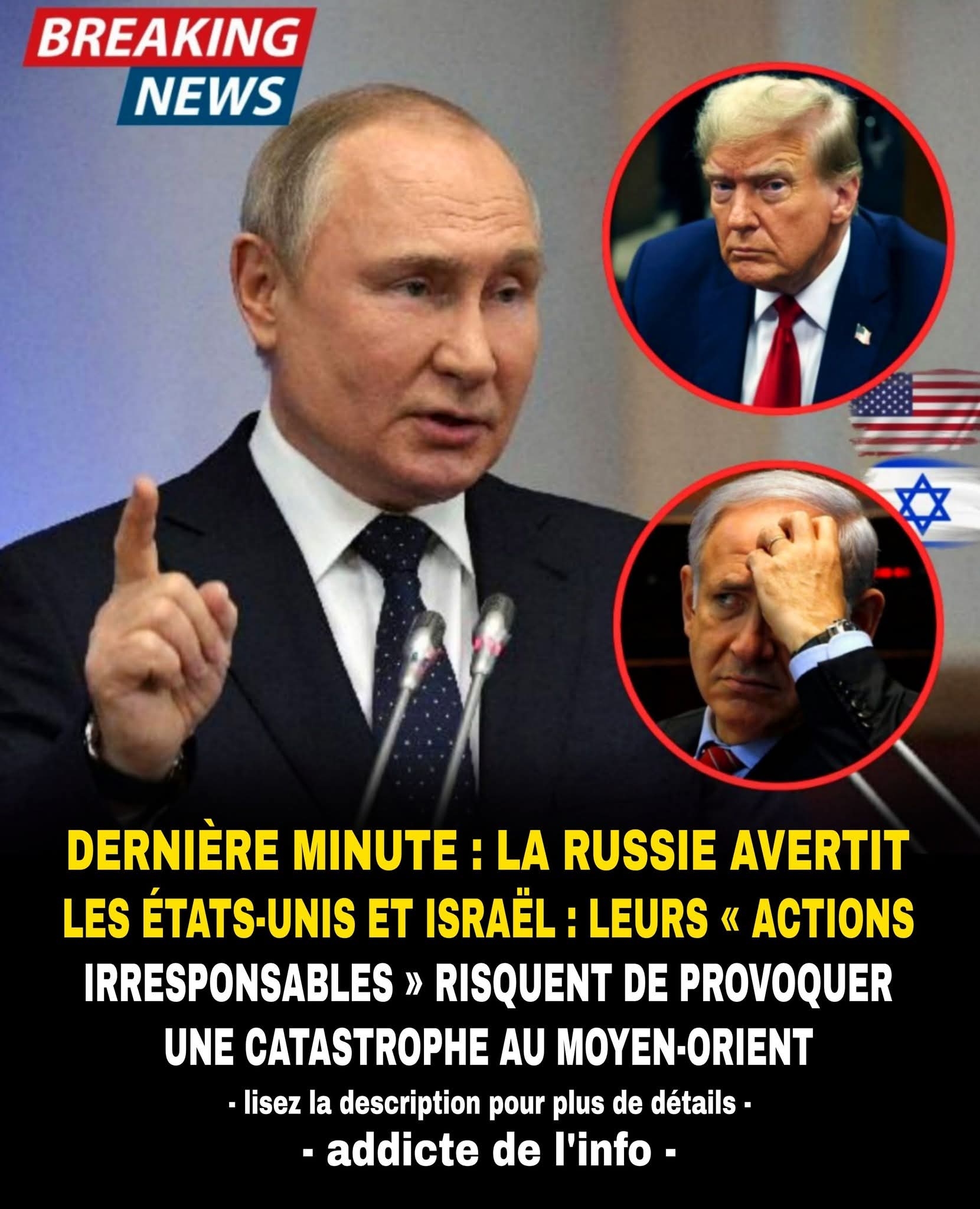 Jérusalem, le président Vladimir Poutine condamnant les frappes récentes comme des « actions irresponsables » susceptibles de déclencher une catastrophe régionale. Cet avertissement sévère fait suite à des informations faisant état d'une frappe américaine importante sur l'installation nucléaire de Natanz et d'une vague massive de frappes aériennes conjointes ciblant les centres de commandement des Gardiens de la révolution islamique à travers l'Iran.