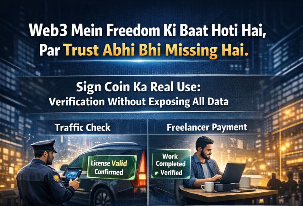 Socho traffic police ko bas license validity check karni hai, ya ek freelancer ko apna payment release karwana hai jaise hi kaam approve ho. Traditional system me ya toh delay hota hai ya extra data share hota hai. Yaha $SIGN smart contract sirf required condition verify karta hai aur process complete ho jata hai.