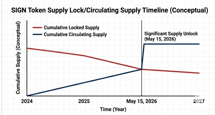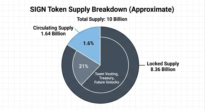 Tokenomics ka reality check dekhna bhi zaroori hai. Total 10 billion ki supply mein se abhi sirf around 1.64 billion circulation mein hai, aur 8 billion se zyada locked hai. May 2026 mein aane wala next major unlock kafi important hoga kyunki supply significantly increase hogi. Agar us time tak attestation adoption slow raha aur token demand strong nahi bani, toh market mein bada selling pressure aa sakta hai. Project level metrics bhale hi strong hon, jahan billions distribute hue aur millions of wallets serve hue, par ek basic gap hamesha rehta hai ki revenue automatically token demand create nahi karta. Jab tak fees directly SIGN mein na aayen ya token ecosystem ka core part na bane, demand structurally weak reh sakti hai.