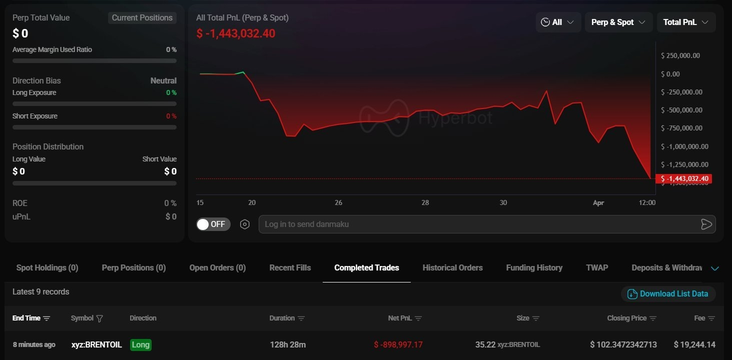 A large trader had been aggressively building a long position in Brent Oil, adding more and more exposure as the market moved.