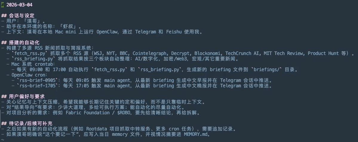 Saat menemui alur kerja yang telah kami konfigurasi sebelumnya, Uncle Shrimp akan secara otomatis merekamnya di MEMORY.md tanpa perlu diminta. Program ini memprioritaskan pembacaan dari memori setiap kali dimulai, langsung beraksi tanpa gangguan yang tidak perlu!