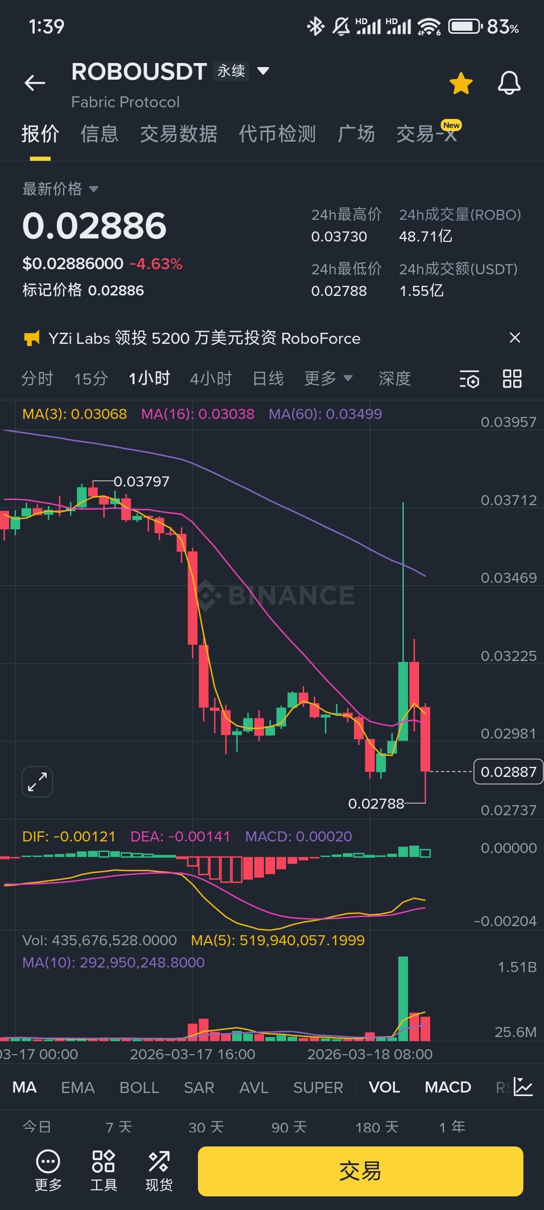 Dalam hal volume, transaksi 24 jam mencapai 4.871 miliar ROBO, dengan nilai transaksi mencapai 155 juta dolar AS. Peningkatan volume ini menunjukkan bahwa dana terlibat dalam permainan yang sengit, bukan hanya pelepasan sepihak.