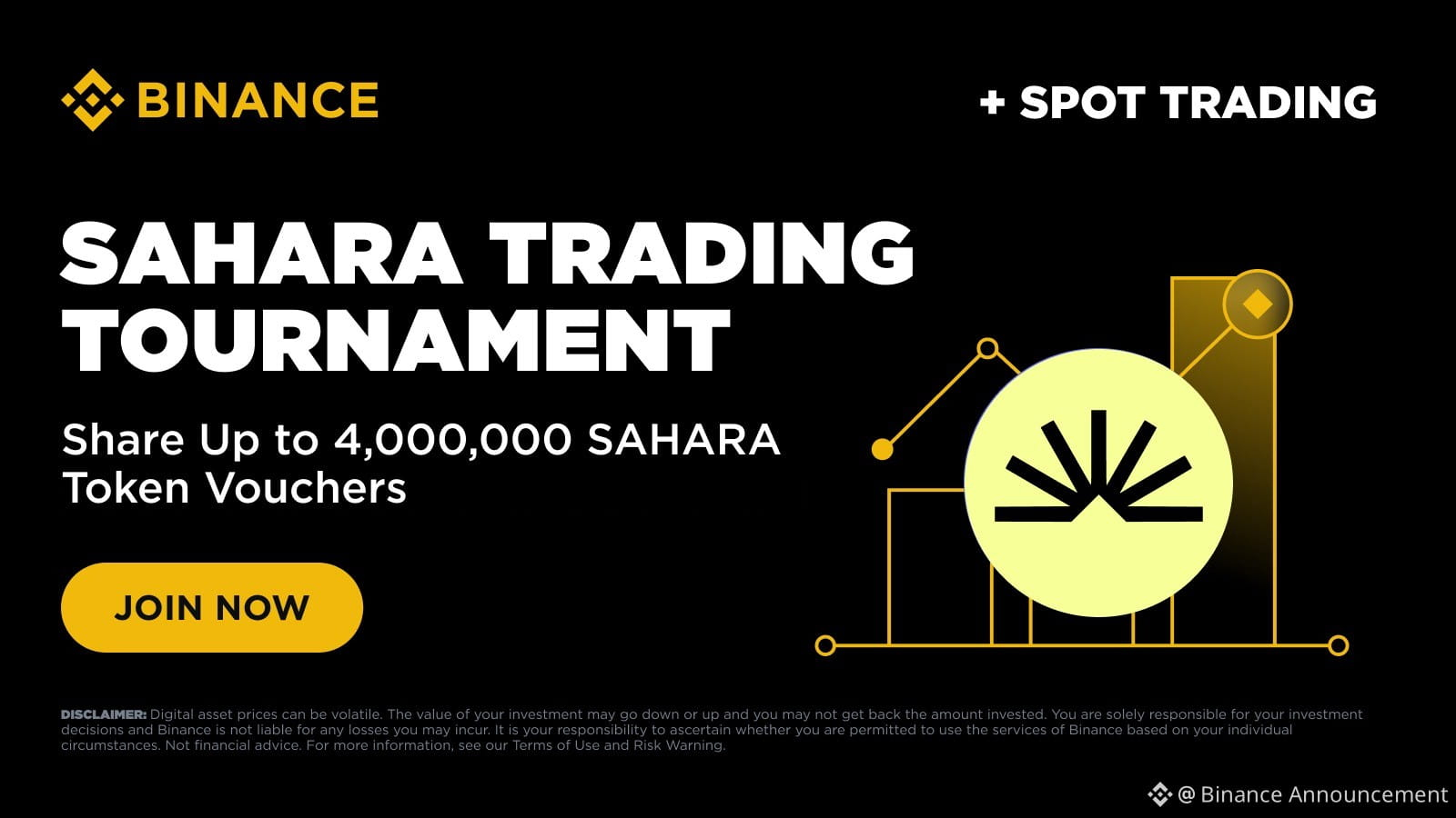Binance dengan senang hati meluncurkan Turnamen Trading Sahara AI (SAHARA) yang memberikan kesempatan kepada pengguna yang memenuhi syarat untuk berbagi total pool hadiah sebesar 4,000,000 SAHARA dalam voucher token!