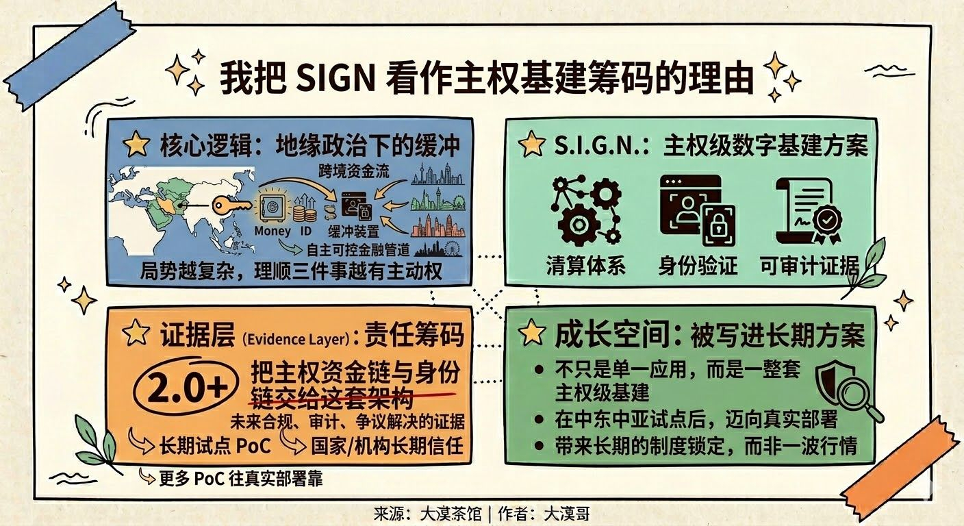 Jika Timur Tengah benar-benar melangkah maju dalam "penyelesaian mata uang lokal + stablecoin regional + digitalisasi dana publik", saya merasa kesempatan SIGN bukan terletak pada emosi jangka pendek, tetapi dalam waktu yang sangat lama, sering muncul dalam berbagai diagram pilot, PoC, dan penerapan resmi — status "ditulis dalam rencana" ini adalah batas atas masa depannya.