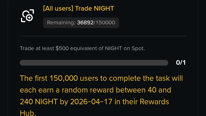 * Misi Perdagangan: Sebuah kumpulan hadiah sebesar 90.000.000 NIGHT dalam voucher token saat ini tersedia untuk pengguna yang memenuhi tonggak volume perdagangan tertentu (biasanya setara dengan $500 dalam pasangan NIGHT).